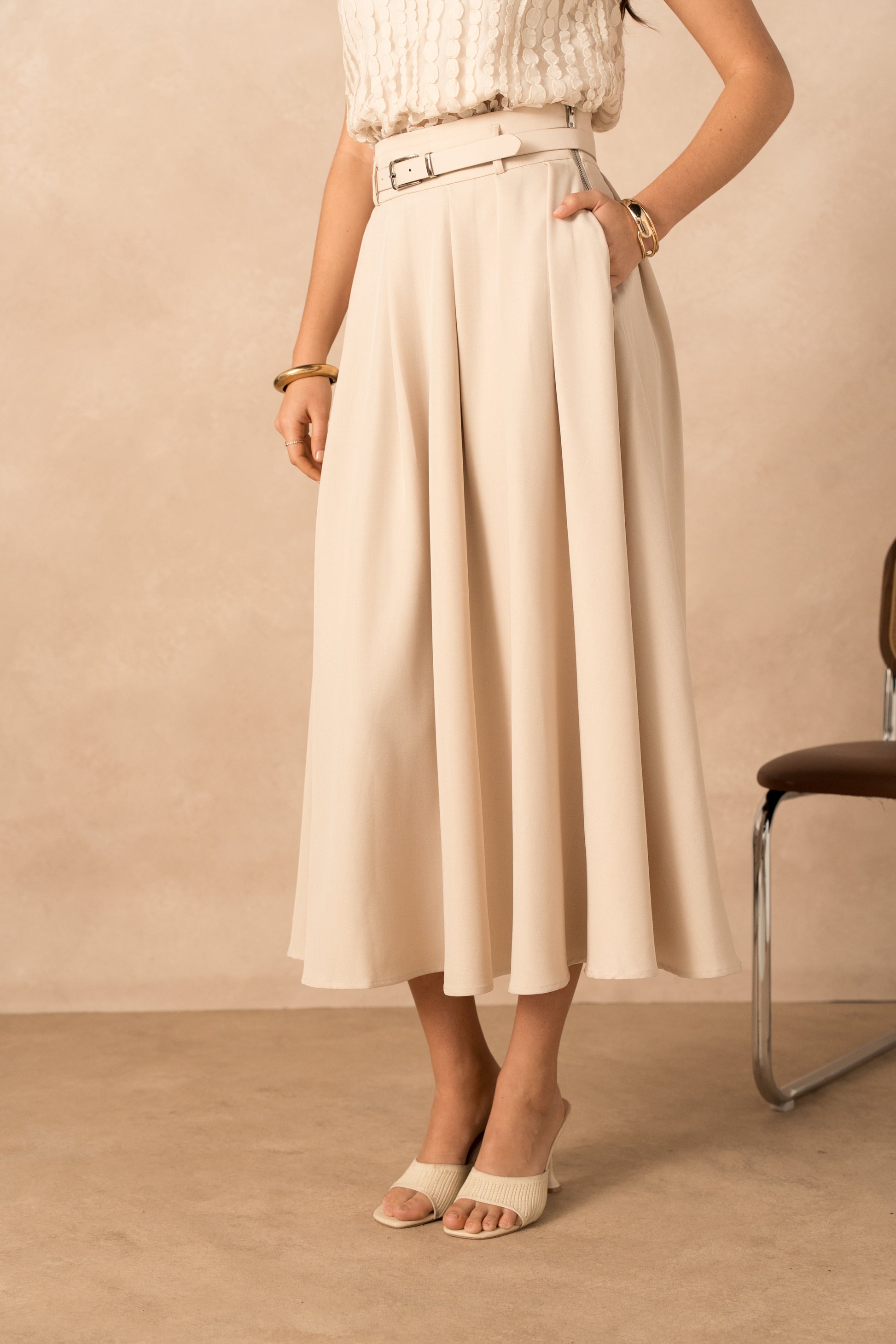 jupe mi-longue avec ceinture