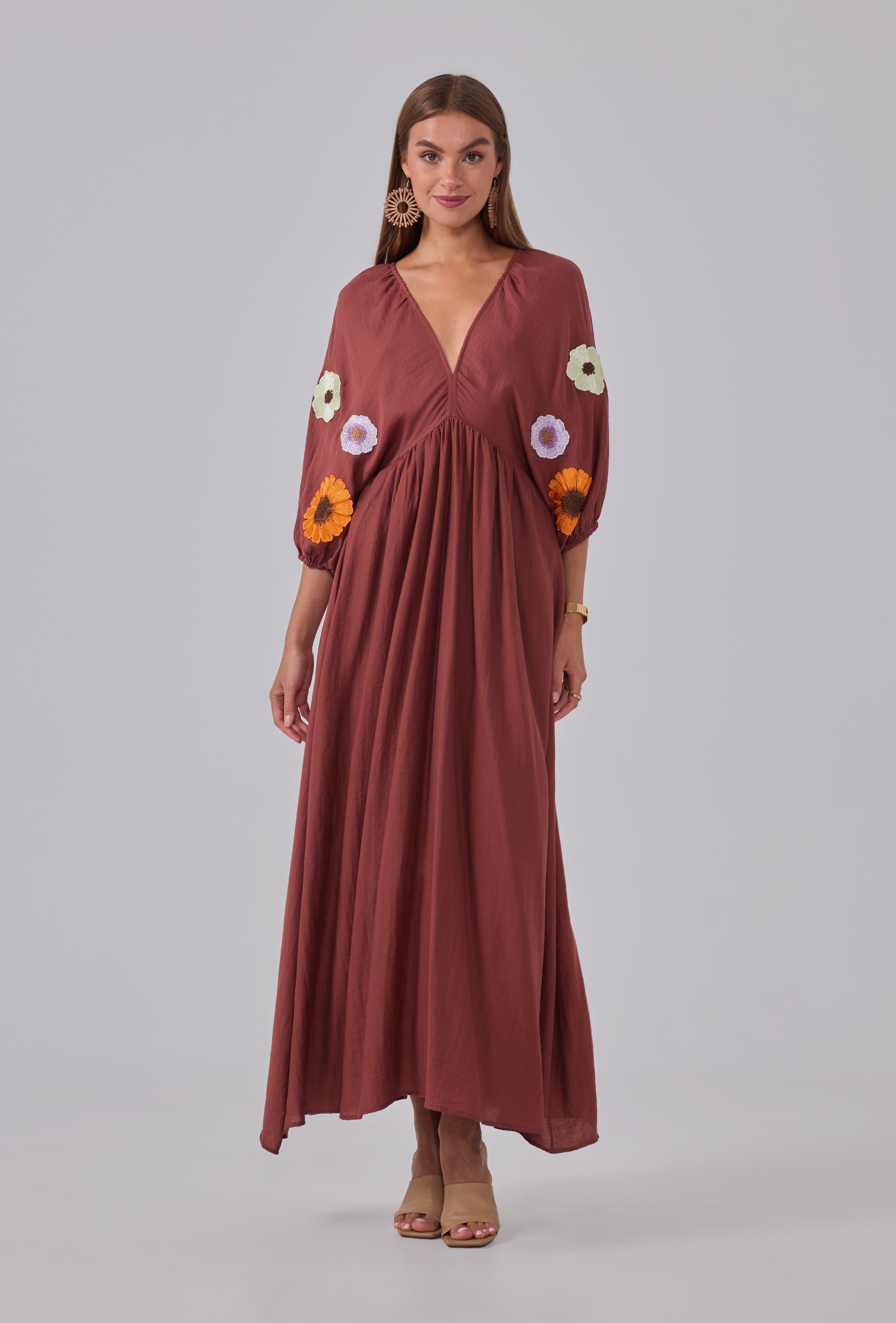 Robe longue imprimée brodé